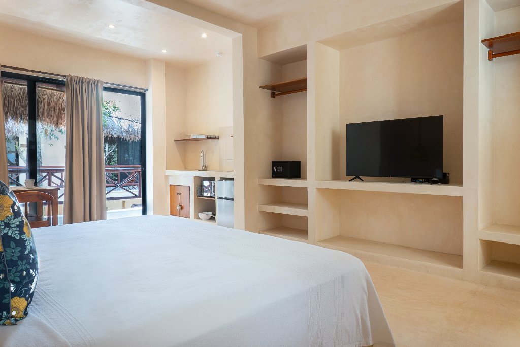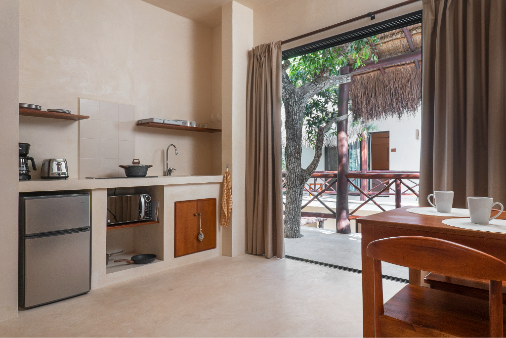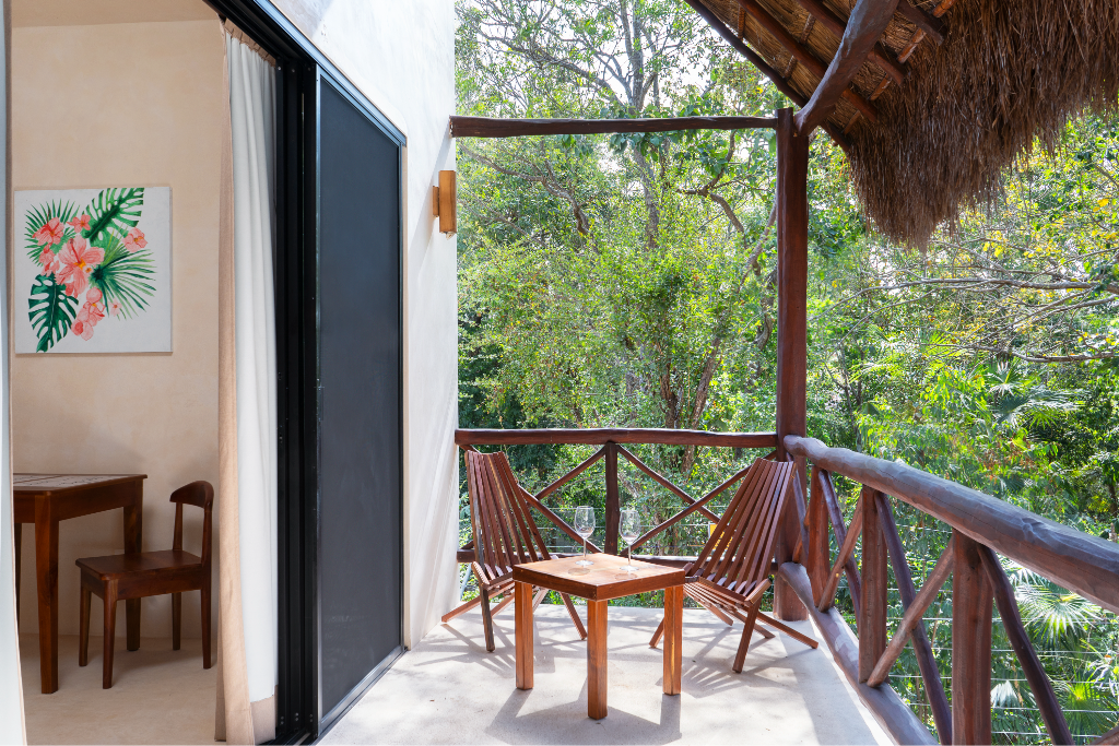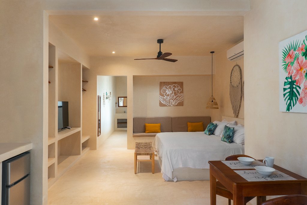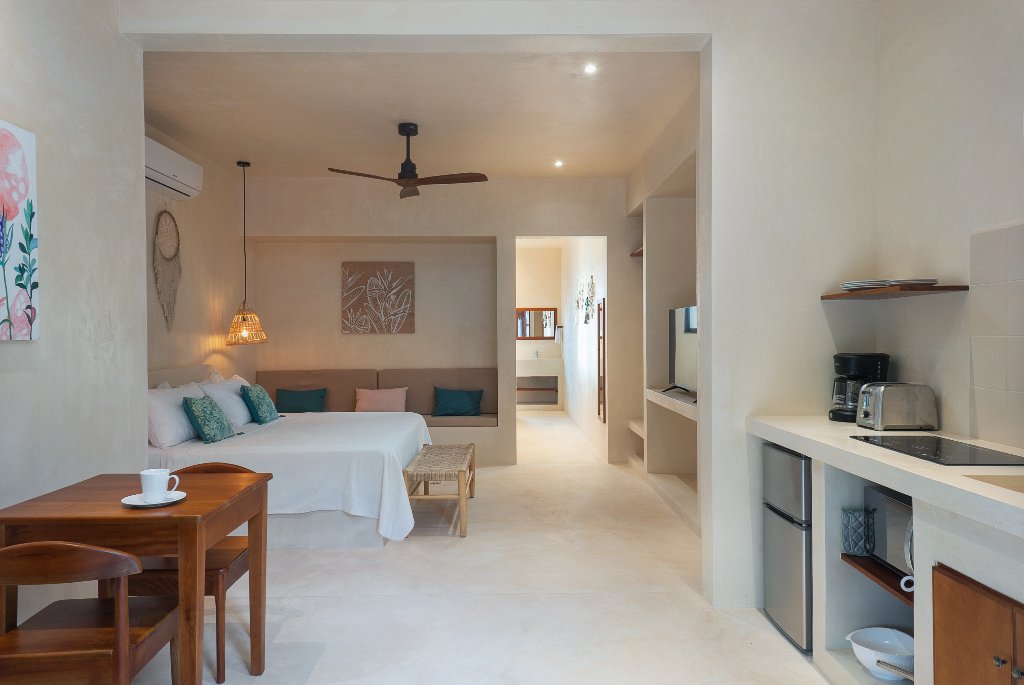 CASA YAAKUN top floor stunning apartments have a super spacious bedroom and a large bathroom with nature views, kitchenette, plus a commonly shared terrace overlooking the main pool.