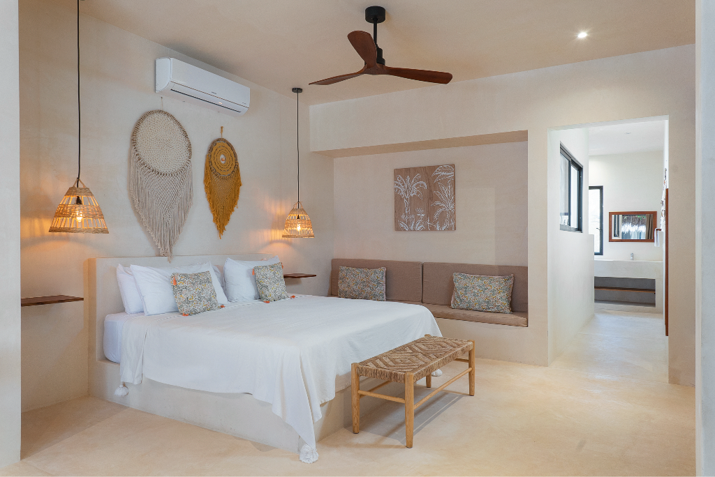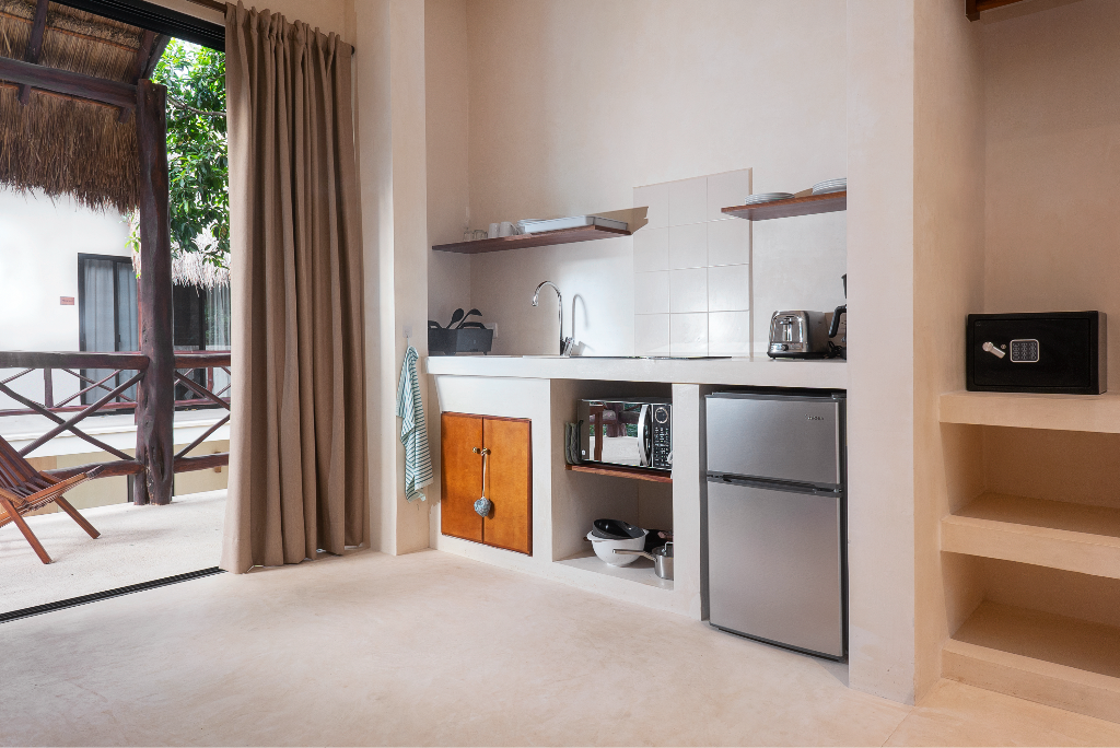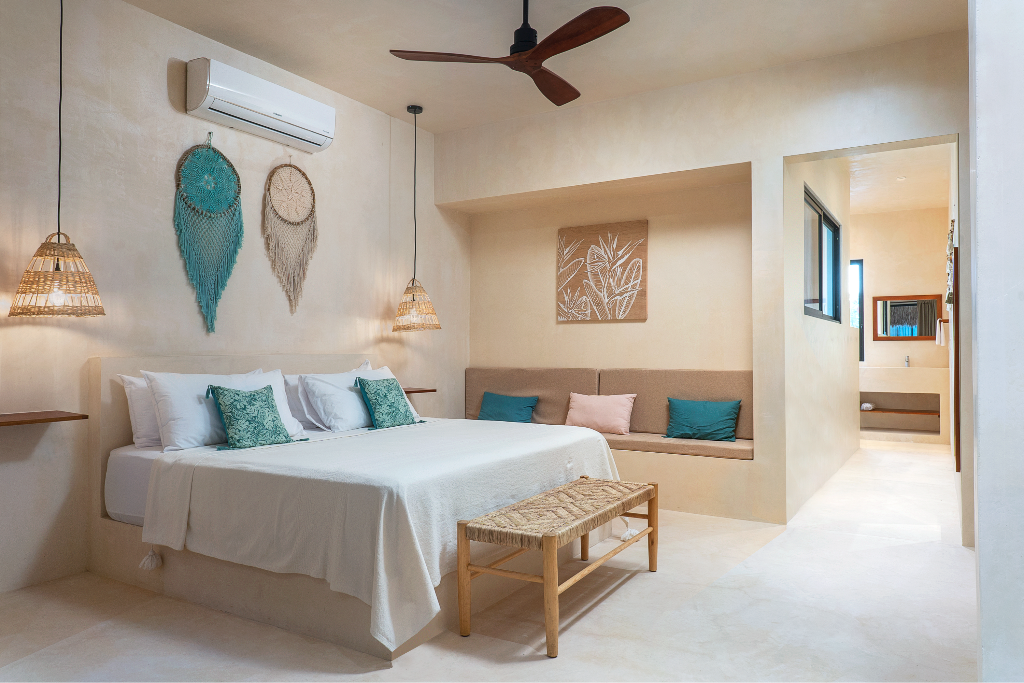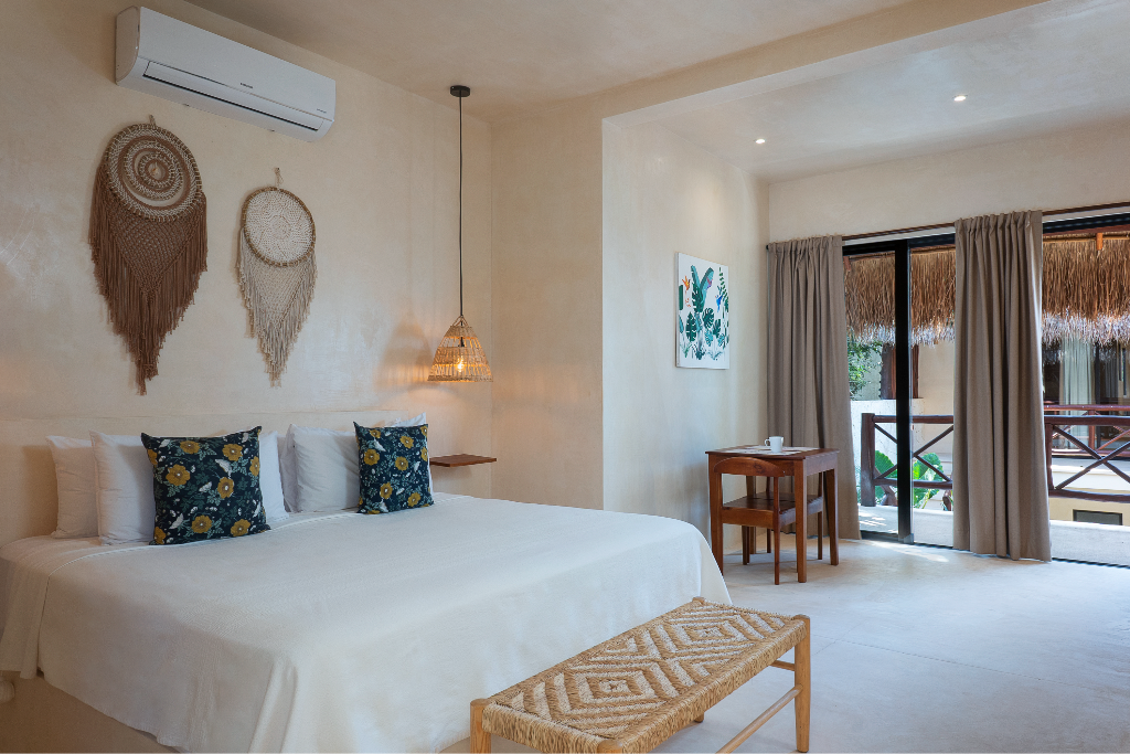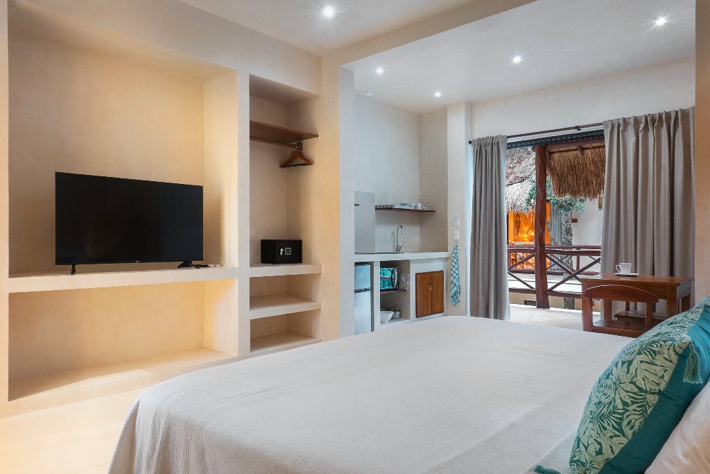 CASA YAAKUN top floor stunning apartments have a super spacious bedroom and a large bathroom with nature views, kitchenette, plus a commonly shared terrace overlooking the main pool.