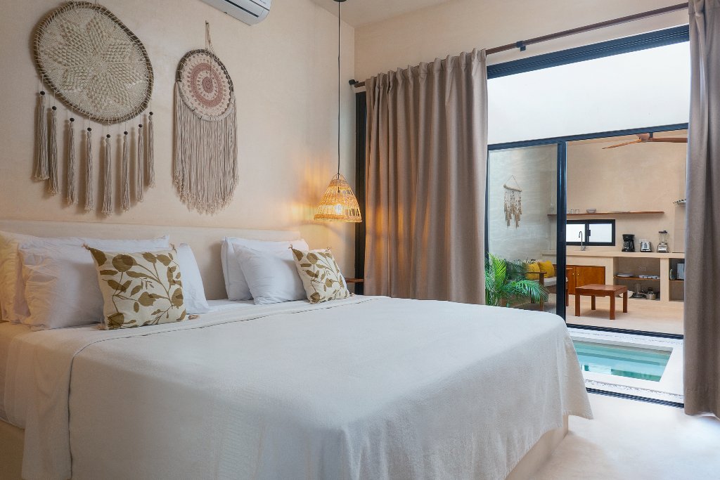 Kukul means “Feather” in Mayan language. In fact, Mayan artisans create unique pieces, such as dreamcatchers, made with feathers. Take a close look at our beautiful wall decor, and in particular our dreamcatchers, that are said to give you a very peaceful night. Casa Yaakun is a private, secluded, heavenly retreat in La Veleta, a cool walkable neighborhood in Tulum where you can easily find many bars, cafés, restaurants and small boutiques.